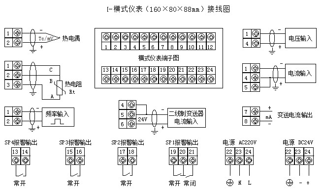 報(bào)警輸出:二限報(bào)警或四限報(bào)警,報(bào)警方式、報(bào)警靈敏度可設(shè)置,繼電器輸出觸點(diǎn)容量 AC220V/3A或AC220V/1A。