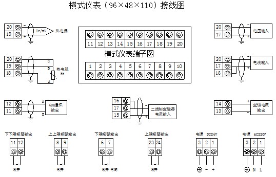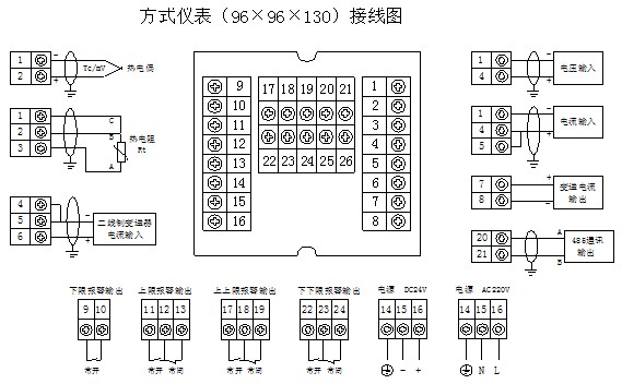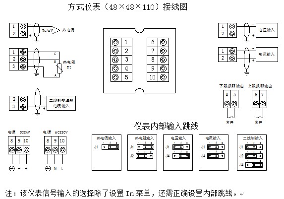 e)帶24V直流電源輸出的儀表,僅用于與二線制4-20mA輸出的無源變送器配套。該電源在儀表內(nèi)部與輸入采樣電路連接,不可作為其它電源使用。